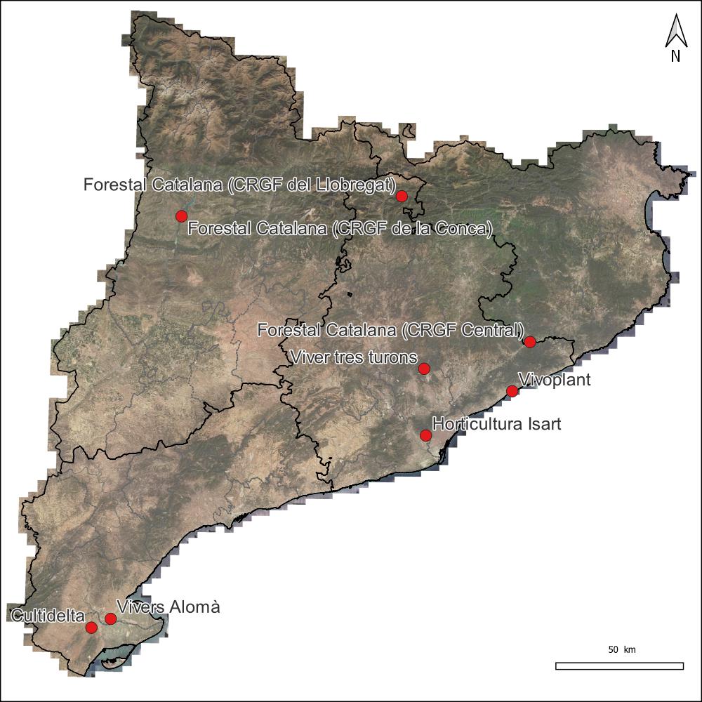 Pel que fa a la resta de plantes, us facilitem un mapa amb alguns dels vivers que tenen planta autòctona mediterrània de la proposada en aquest projecte: